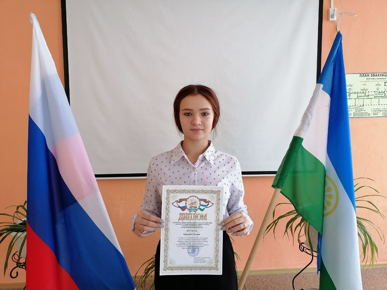 Стерлитамакский район представляли ребята в направлениях "Исследовательские работы" (обучающиеся школ с. Тюрюшля, с. Бельское, с. Буриказганово) и "Литературное творчество" (обучающиеся школ с. Буриказганово, д. Золотоношка). По итогам конкурса призером стала ученица МОБУ СОШ д. Золотоношка Карпунина К., ее работа согласно Положению о Всероссийском конкурсе обучающихся на знание государственных и региональных символов и атрибутов Российской Федерации отправлена на федеральный этап.