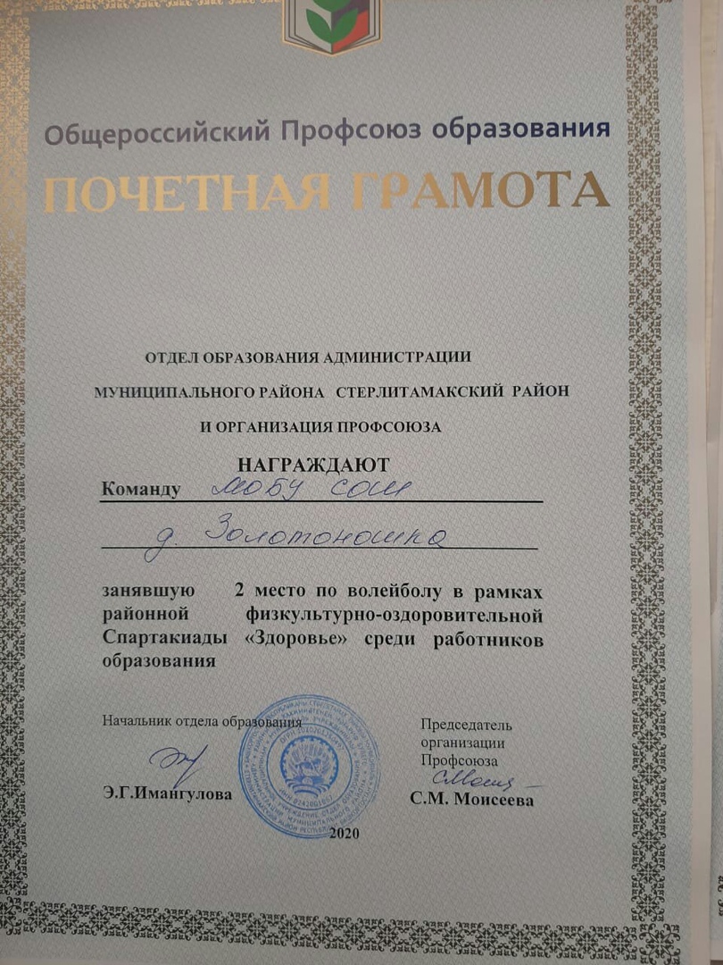 Муниципальное общеобразовательное бюджетное учреждение средняя общеобразовательная школа имени Героя Советского Союза Ткаченко Якова Тарасовича д. Золотоношка муниципального района Стерлитамакский район Республики Башкортостан