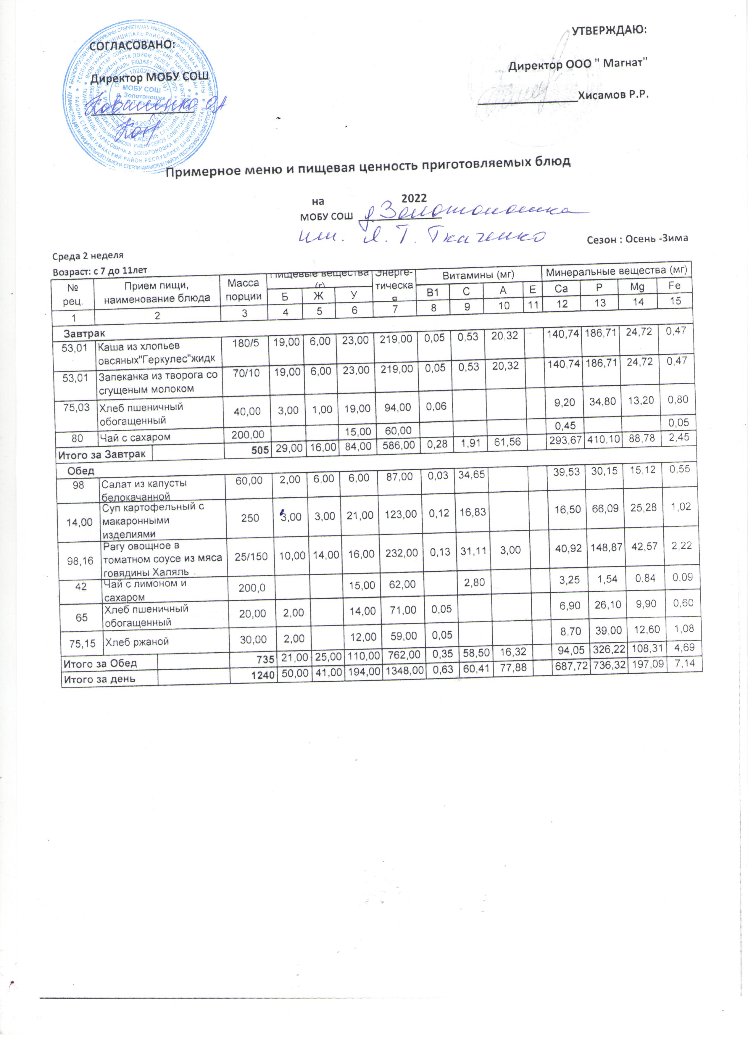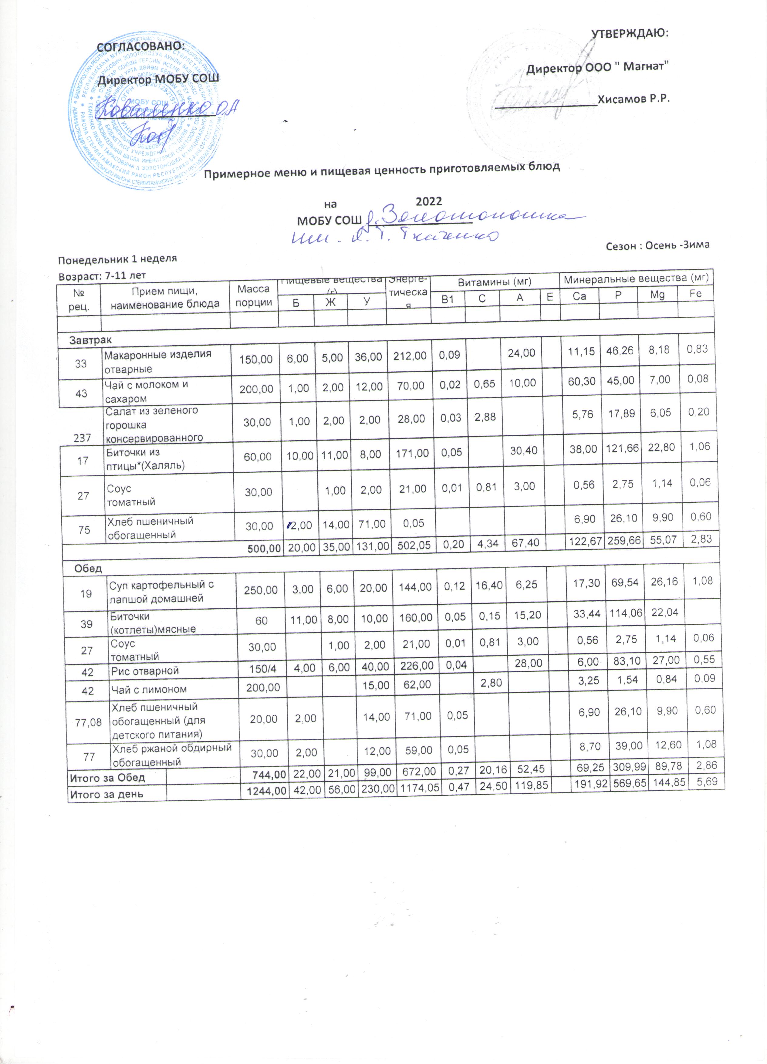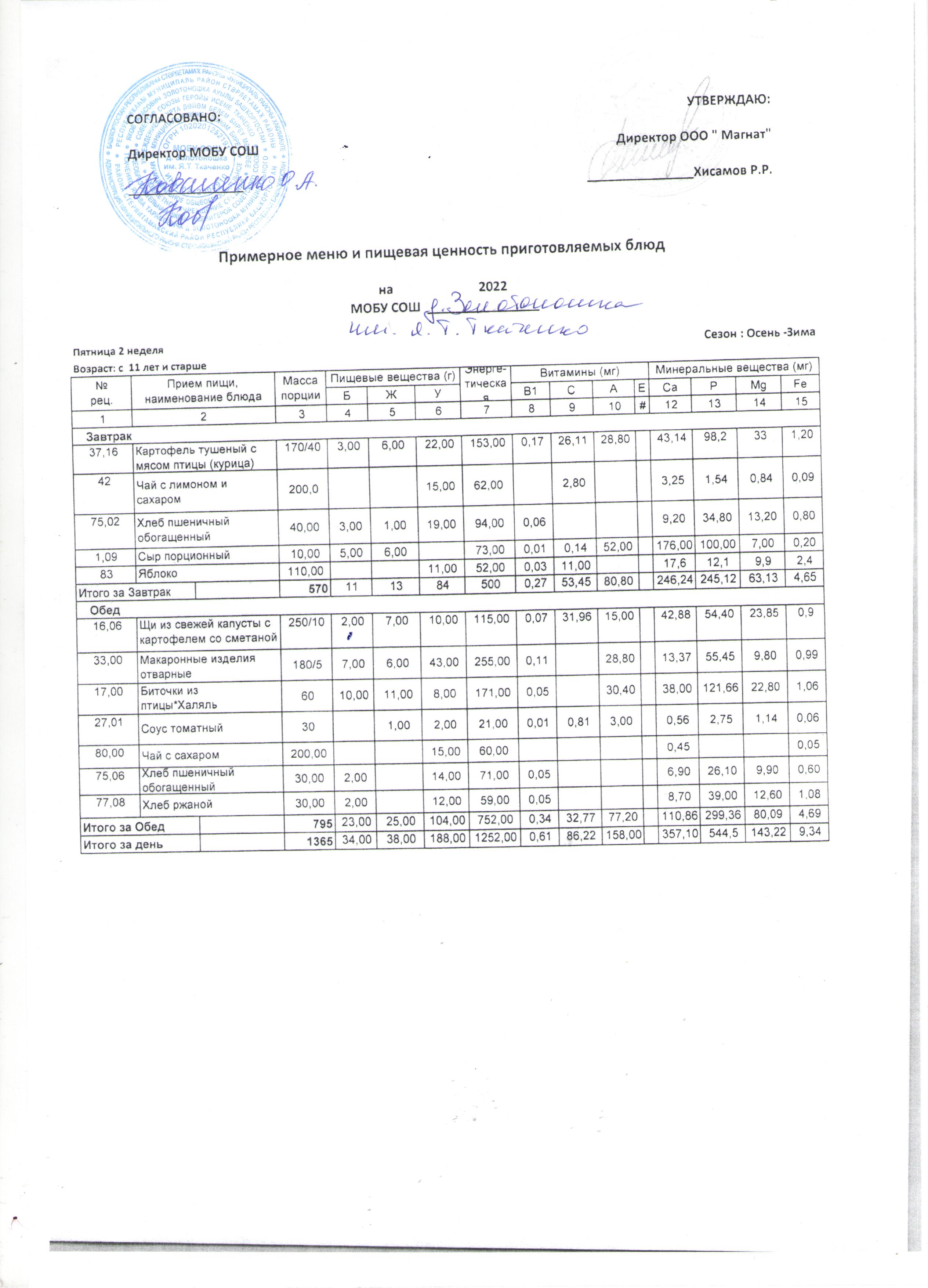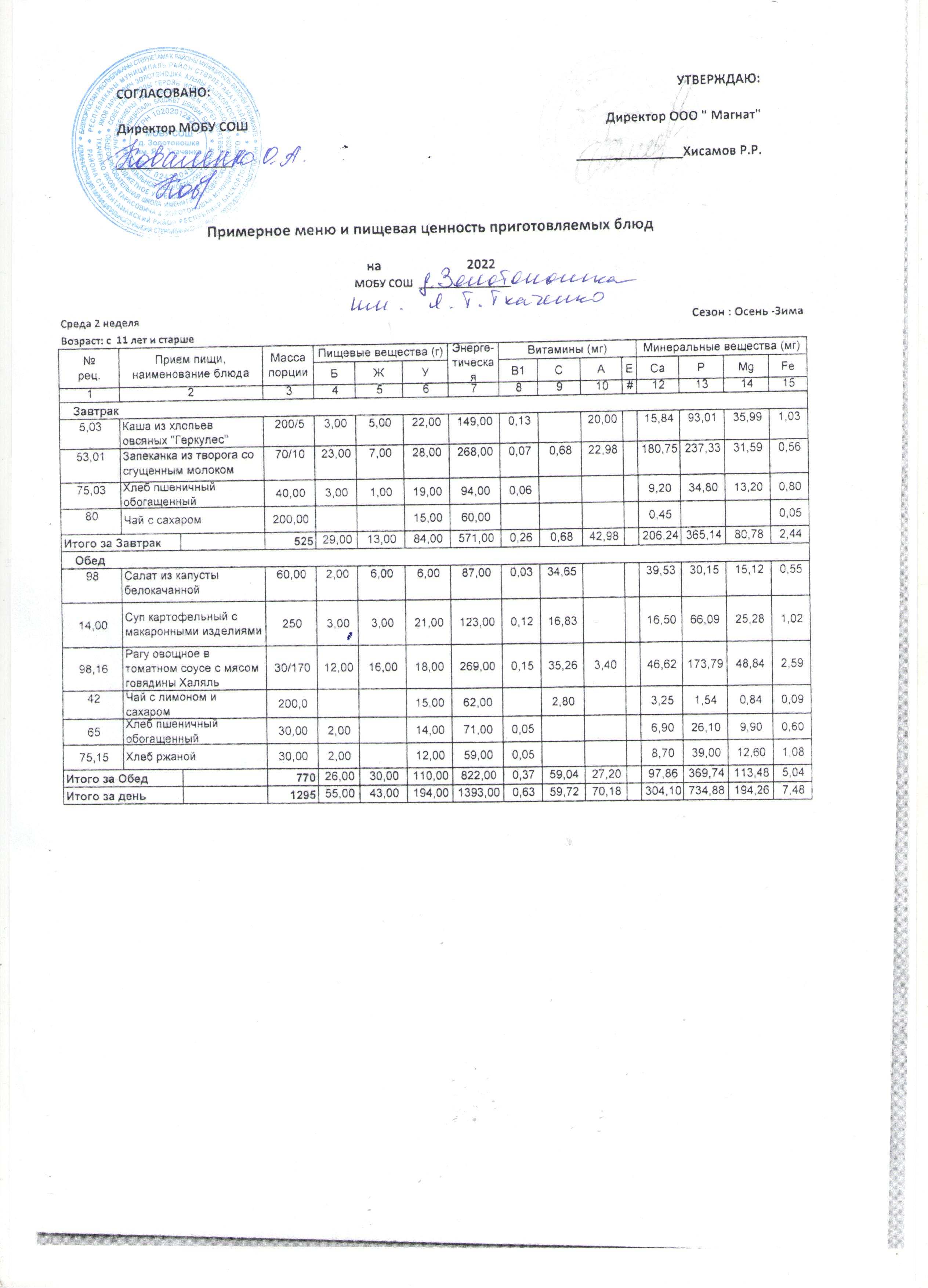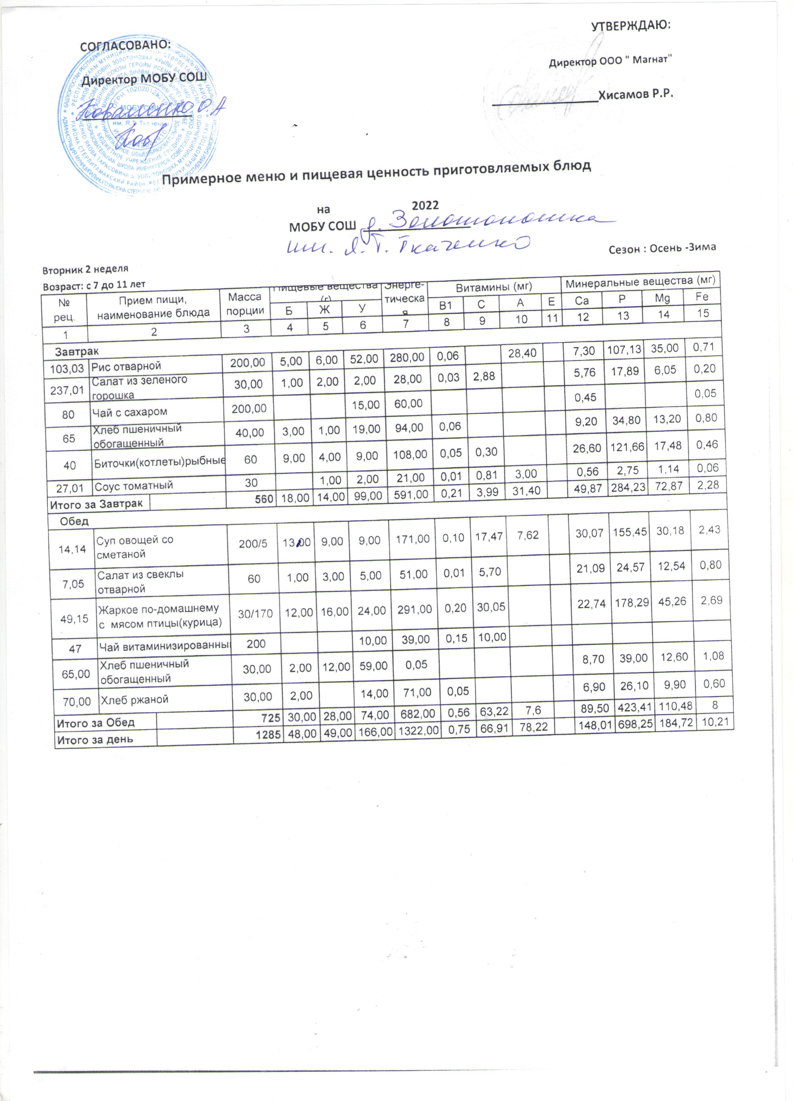 (Меню от 7 лет -11 лет)